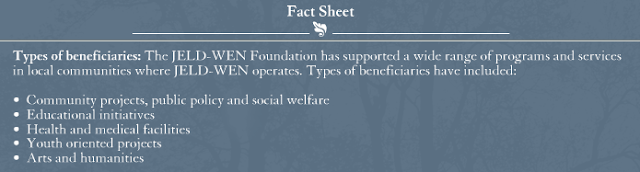 At the heart of the JELD-WEN Foundation is a desire and commitment to give back to working JELD-WEN families and communities, to improve the lives of those we are privileged to serve as well as others who benefit as a result...